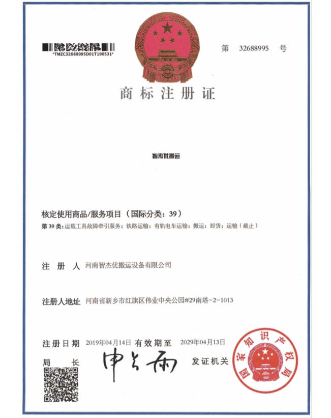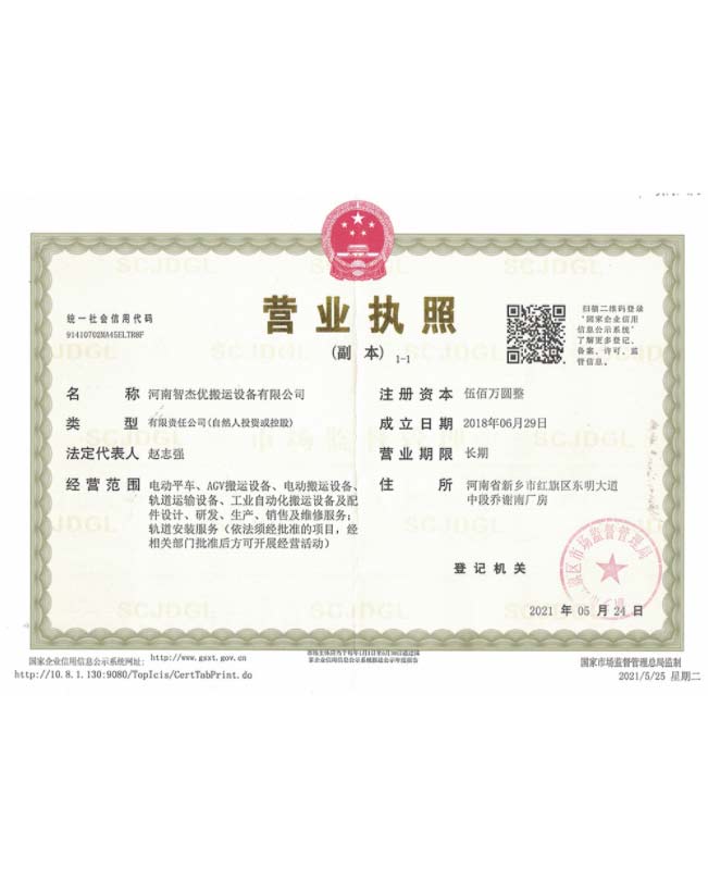 自动化液压臂磨具转化搬运车证书