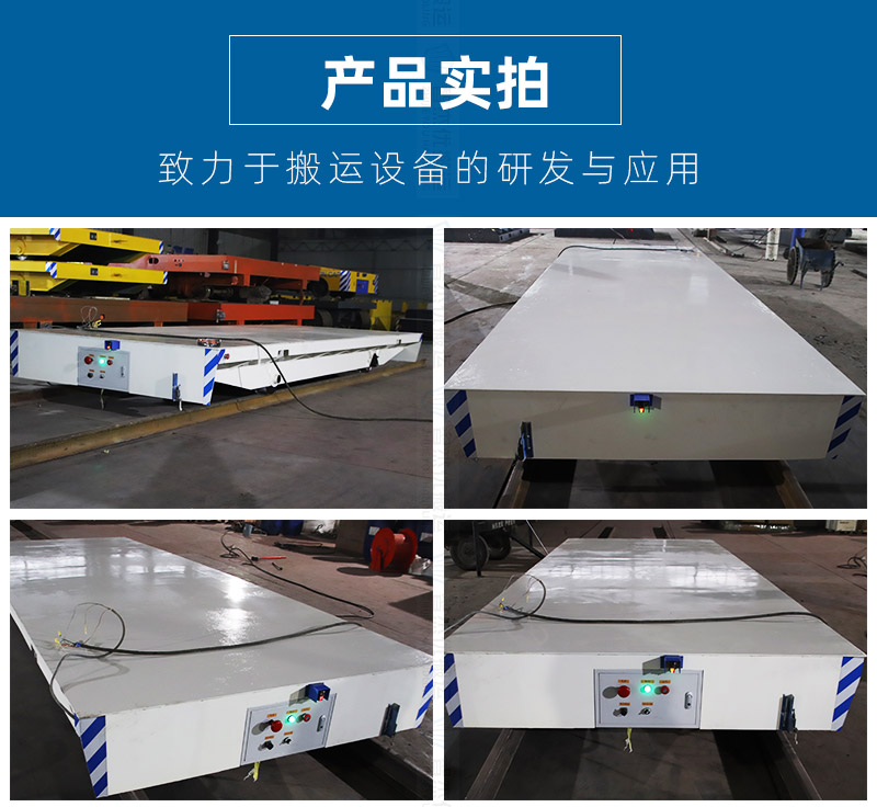 该车长5.2米宽2米,可搬运10吨的货物,无线遥控平板车前进、后退行走,设有行程开关到达地点自动停车。