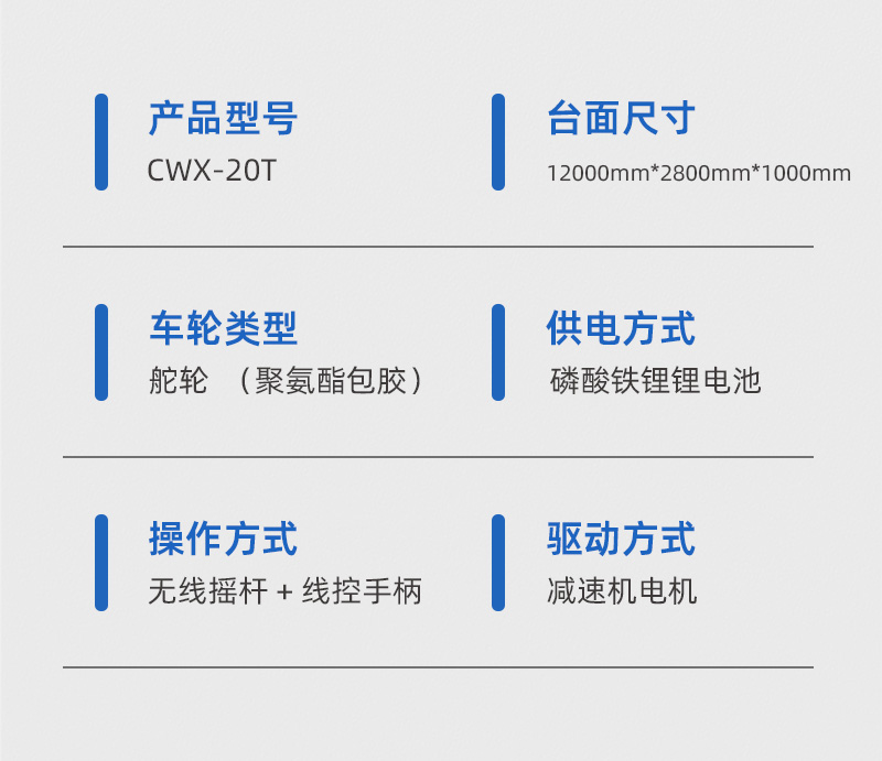 智杰优搬运为航运装备制造企业研发制造的2台重载舵轮全向车,长12米宽2.8米高1米额定载重20吨,定制超长车身主要用于大型海洋工程装备的转运过跨,选用锂电池供电满载运行不低于2小时,轮系配备4组舵轮,可全向运行实现前行、后退、左右横移、斜行、原地旋转等行走方式,适应室内室外及狭小空间作业环境,聚氨酯包胶材质适应多种路面运行,无线遥杆操控可远距离行驶,舵轮全向车具有避障雷达、声光报警、急停开关等保护功能,**性高,PLC人机交互触摸屏实时显示全向车运行状态,可手动设置调整平车参数,除遥控模式外 还可按企业需求定制为AGV自动化搬运车,提高重型设备转运效率 加快海洋工程装备建造进度 !