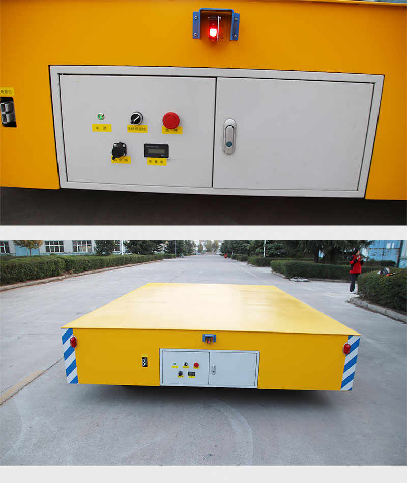 液压转向无轨搬运车,长4米宽2.4米高0.8米额定载重10吨,整车箱梁结构钢板焊接,载重量大不易变形,满载状态下,无轨车运行平稳、性能稳定!采用锂电池供电续航时间长充电时间短,智能充电桩充满自动断电,运行速度按客户要求满载0-35m/min,空载0-40m/min,运行速度可调节,轮系采用聚氨酯包胶轮适应水泥地面运行,液压转向稳定灵活,客户现场有6-8度上坡路段,车辆满载状态下轻松上坡动力强劲,**装置配备光电检测自动避障、声光报警、急停开关、防撞块等**保护,确保平车**往返运输作业!