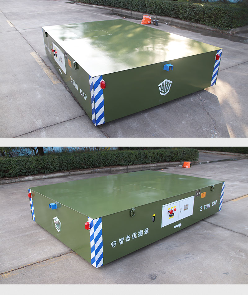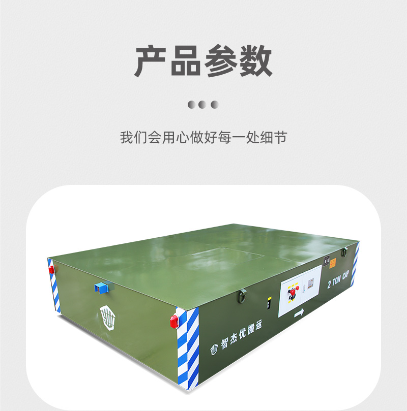 工件转运无轨车室外电动搬运车,长3米宽2米高0.6米额定载重2吨,主要用于工件的转运作业,蓄电池供电运行路线自由可跨车间运输,平车设有电量显示表,电压低于30%时报警提示充电,智能充电机充满自动断电,无线遥控操作平车前进后退、左转右转、原地旋转等运动控制,聚氨酯包胶轮适应多种路面运行,可在狭窄空间复杂工况下稳定作业,**装置设有声光报警、急停开关、光电检测遇到障碍自动停车,确保平车**平稳运输。