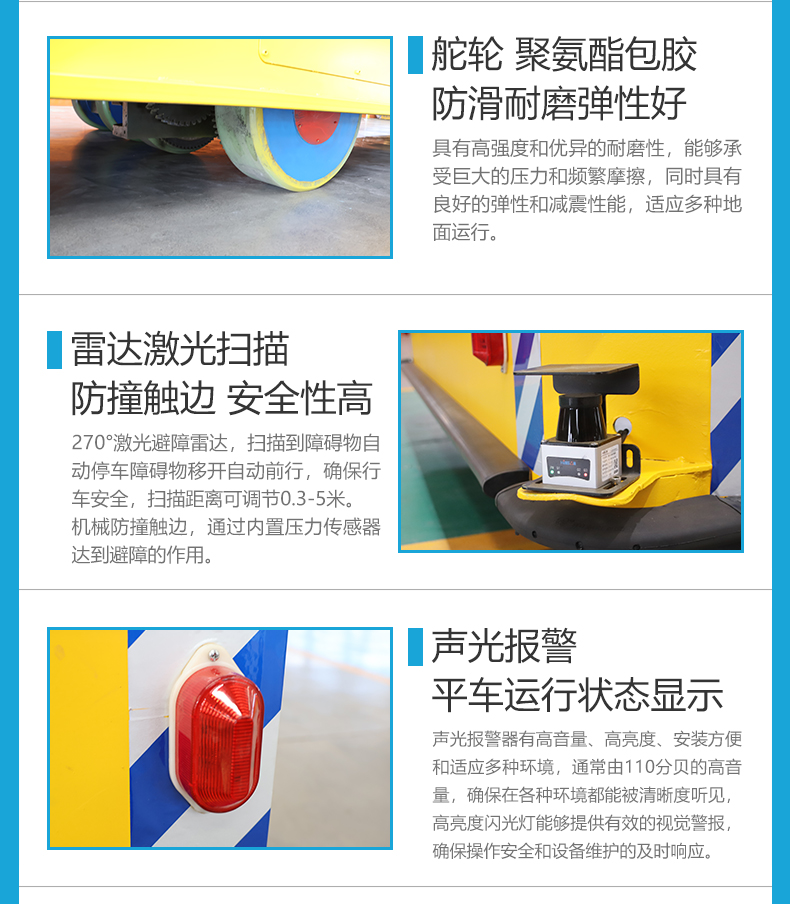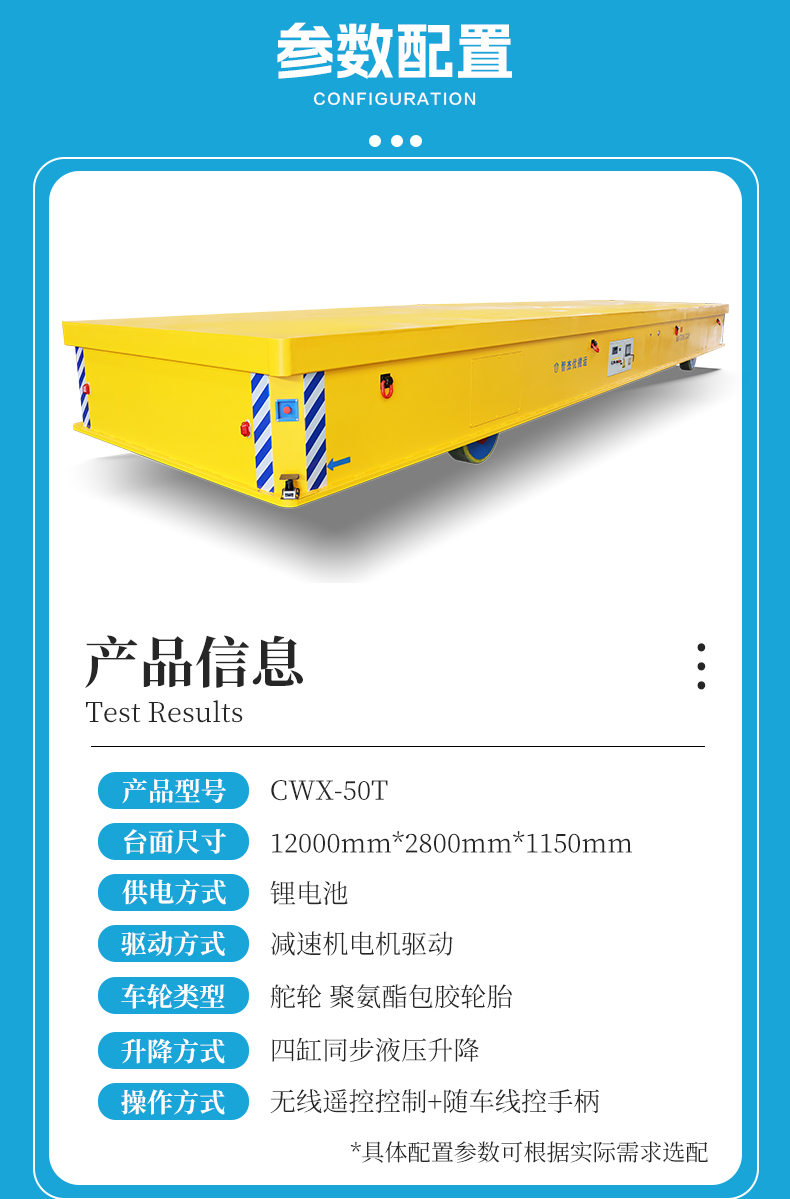 重型设备转运狭窄空间难以周转?精密定位耗时费力,重型载具行动笨拙?那一定不能错过这款50吨重载纵横移动升降车。整车长12米宽2.8米高1.1米用于大型设备的跨车间转运。台面定制四缸同步液压升降模块,可实现平稳顶升托架,配合全向移动底盘,让超长设备在复杂工况中轻松转运灵活穿行。轮系配备四组差速舵轮,独立转向系统赋予无轨车360°全向移动能力,伺服行星减速机与定制化伺服电机组成黄金动力链,可达毫米级位移精度控制,支持横移、斜行、原地旋转等8种行进模式。台面定制称重模块实时显示货物重量信息,超载报警提示。大容量锂电池供电无需频繁充电满负荷工况下仍能实现长距离续航。**装置配备雷达检测遇障即停!