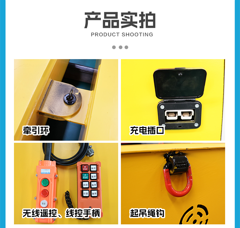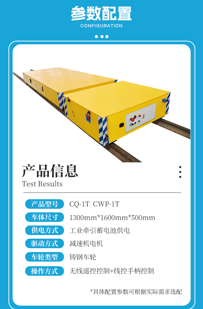 电动轨道牵引车+无动力拖车车组,通过前方牵引车带动后方无动力拖车及货物平稳运行。高强钢车架箱梁结构稳定牢固。搭载高密度工业牵引蓄电池,结合高效减速机电机驱动系统,输出扭矩强劲稳定,轻松牵引拖车及货物。配备工业级无线遥控系统,操作简单方便。适用于喷漆房、喷砂房、地铁隧道内牵引施工材料及设备等工况,牵引车适配性强应用灵活,模块化设计维护简单,节省人力物力提高效率。**装置设置光电检测,检测到障碍物自动停车,前后设有极限限位,可实现定点停车。