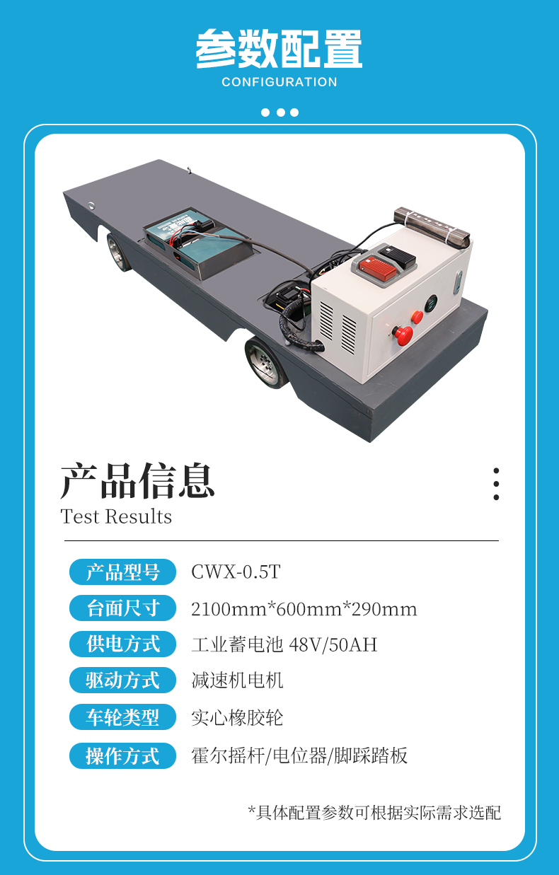 专为舞台场景打造的无轨移动平板小车,长2.1米宽0.6米高0.29米超薄机身轻松穿越舞台狭窄通道,实心橡胶轮胎不伤地板,让道具、灯光、音响设备在演出中实现“隐形移动”,霍尔摇杆+电位器控制系统,电动转向灵活稳定0.5m/s无级变速匹配演出节奏,多台协同作业,让舞台道具轻松移动变换,蓄电池组供电一用一备更换简单满足大型演出续航需求,电机减速机驱动运行平稳启停缓慢无冲击。