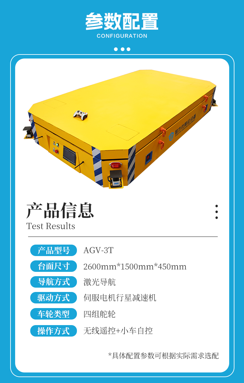 专为高精度复杂场景搬运研制的3吨激光导航升降AGV。2.6米*1.5米*0.45米定制车身,先进2D激光SLAM导航技术,对角双激光雷达配置构建全方位无死角环境感知,实时构建环境地图实现毫米级高精度定位导航。配备四组高性能舵轮具备全向移动能力,伺服电机伺服行星减速机黄金组合驱动,响应迅捷控制精准运行平稳低噪。定制悬挂式液压升降平台,升降平稳同步无卡顿,适配不同高度货物装卸,可对工装架进行顶升搬运,内置AGV专用调度系统,支持多种通讯协议无缝对接上位调度,实现任务智能分配、路径规划、状态监控,满足柔性化生产搬运需求。大容量锂电池供电配备自动充电桩,对角雷达检测自动避障提高转运效率确保行车**。