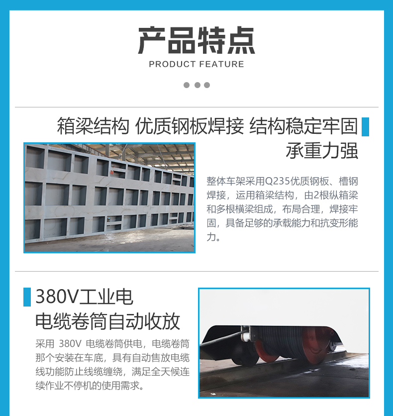 重型电缆卷筒轨道平车,专为应对高温铸件转运严苛工况设计,长4米宽2.5米高0.65米额定载荷30吨,车架箱梁结构不易变形,台面铺设耐火砖形成坚固耐热保护层,有效隔绝高温铸件热辐射,保护车体结构延长使用寿命。电缆卷筒供电,卷筒安装在平车底部自动收放电缆线,优化空间同时满足全天候连续作业不停机,显著缩短铸件过跨时间,生产效率直线飙升,平车前后配备光电传感器自动识别障碍物自动避障,大幅降低碰撞事故风险,营造高效**的生产环境!