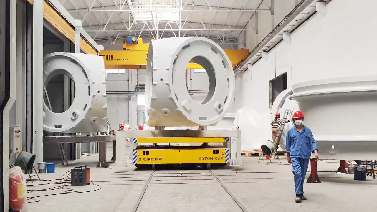 纵横移动rgv轨道车,整车长宽3.5米,高0.9米,可搬运60吨的货物。平台装有双组四杠同步升降,升降行程200mm,双组大功率电机启动力足驱动平车运行,密闭式电气箱,防水、防潮、防油污、防水雾,锂电池供电续航里程长,采用PLC控制、人机交互触摸屏随时随地设定参数,平车设有18个呼叫工位,16个换轨点,通过RFID定位标签、四组接近开关进行位置识别,一键到位自动停车,轻松实现多点位自动停靠换轨,实现平车纵横移动,该车电气功能强大,自动化程度高,**装置配备齐全,整车**系数达到150%!
