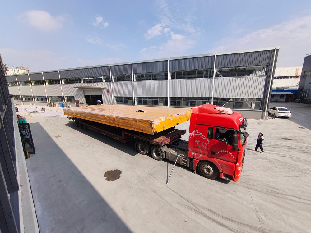 近日,天津客户定制的120吨大型重载无轨电动平车正式交付发往客户现场。此次交付的无轨转运车体量惊人,长达15米宽达5米,其核心结构采用高强度整体车架与精密钢板焊接技术,确保在承受120吨极限载荷时,车体依然稳定牢固。