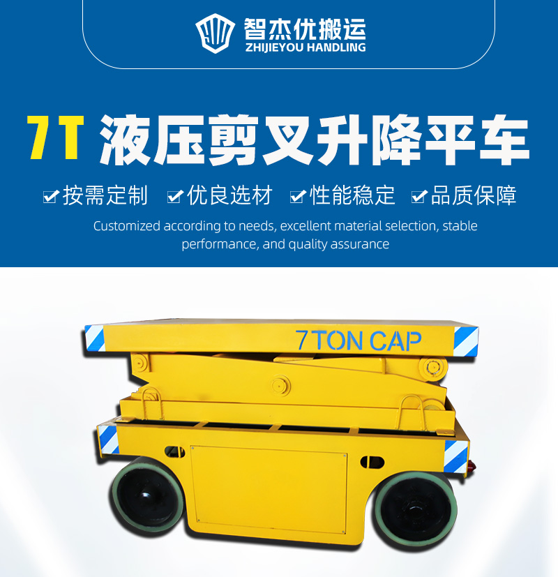 液压升降无轨电动平车,是一种平面升降机械设备,产品应用广泛。设备具有结构稳固,故障率低,运行可靠,**高效,维护简单方便等。剪叉式机械结构和升降方式,使升降平台有较高的稳定性和较高的承载能力。设备可根据不同的升降机行程按照要求定制,采用不同的升降方式,有液压二缸同步升降,剪叉式升降,电动丝杆升降等方式,控制方式由无线遥控控制,PLC自动化控制。随车线控手柄+工业无线遥控器可选,电动转向可360度原地旋转,声光一体报警和激光检测,遇障碍自动停车,充满自动断电,聚氨包胶车轮,断电自动刹车(可调)。移动灵活的车身,方便快捷,自动化现代企业**生产的理想设备。