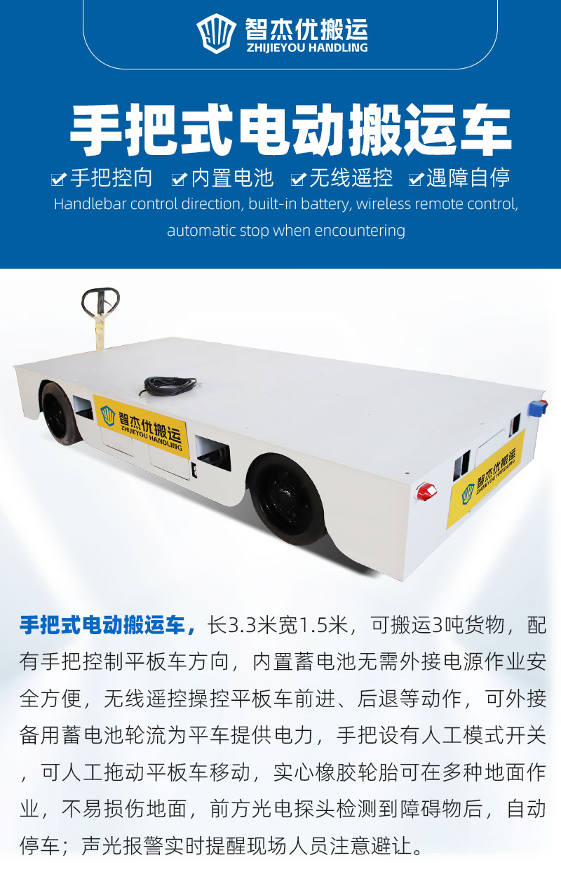 河南智杰优搬运设备有限公司是一家集开发、设计、生产、销售及售后服务为一体的化电动平车生产公司。公司拥有一支现代化的管理团队,凭借科学的管理方法和服务理念,依靠人才、环境支持优势,已成为电动平车行业的企业。致力于工厂、车间、仓储、码头、铁路等领域物料搬 运系统的研发、设计、生产、销售和服务。公司拥有现代化的管理团队、实力雄厚的研发、设计产品技术开发团队与实际工作经验极其 丰富的生产技师队伍。凭借科学的管理方法、雄厚的技术实力,全体员工精诚合作,公司已成为电动平车行业的中坚力量。