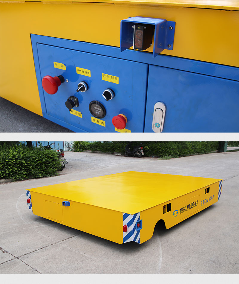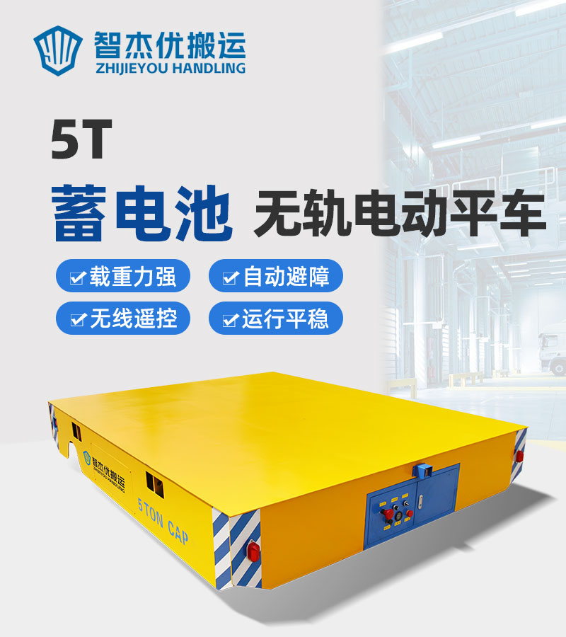 模具搬运无轨电动平车,整车长3米宽2.4米高0.55米载重5吨,客户用于车间内模具的搬运工作,车架箱梁结构牢固稳定不易变形,免维护蓄电池供电节能环保,无线遥控和随车线控手柄两种操控方式,操控平车前进后退左右转弯,液压转向可以边行走边转弯,聚氨酯包胶车轮弹性好,水泥地面任性跑,前后感光探头检测遇到障碍自动停车,声光报警时刻提醒现场人员注意避让,智杰优制造电动平车多年,多种型号满足您的搬运需求 关注咨询马上报价。