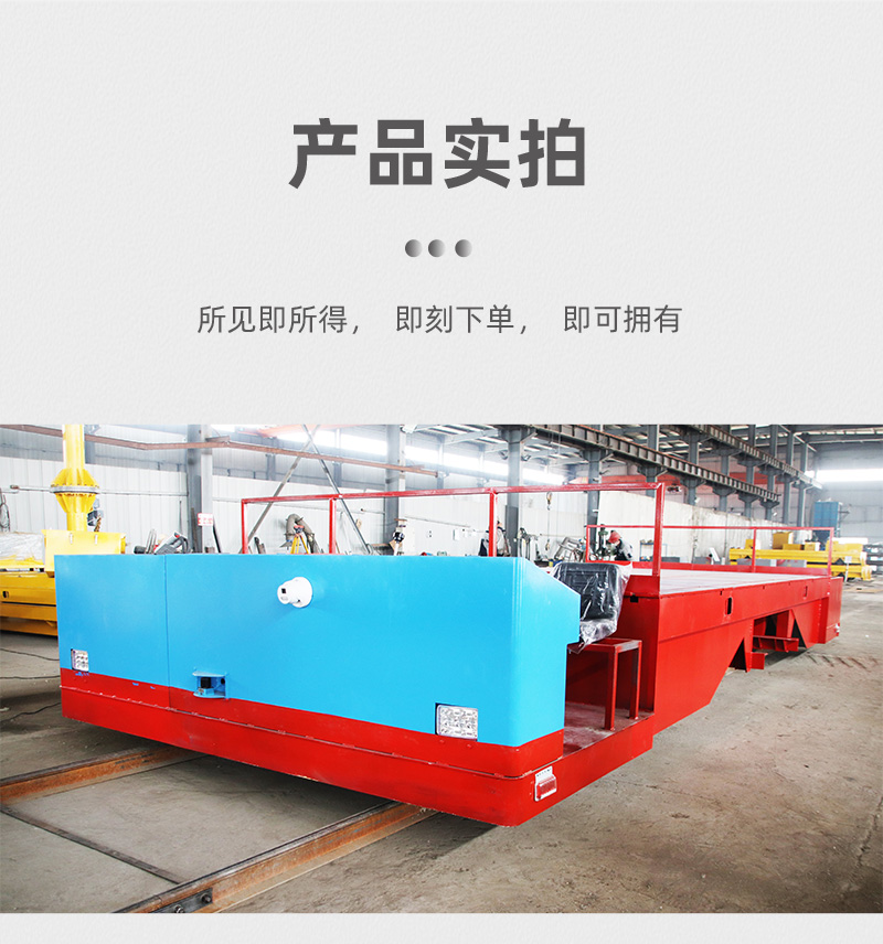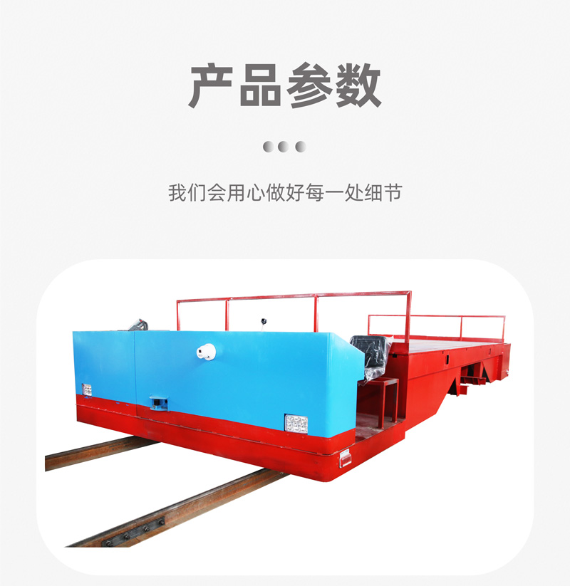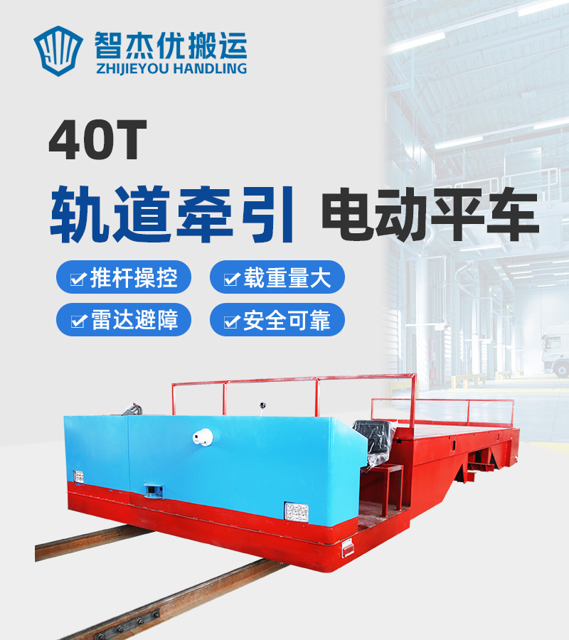 轨道牵引电动平车,该车即可为无动力车辆提供牵引动力,自身也可搬运重物使用,整车长5.2米宽2.8米高0.8米载重40吨,平车前端设有驾驶位,可人工驾驶推杆操控平车前进后退。加减速,也可远距离无线遥控作业,平车配备PLC显示屏,实时显示车辆状态信息,同时配备前置射影像视屏,实时显示前方路况实况,避免碰撞,示廓灯、摄像头、激光雷达270度自动扫描避障,确保平车运行**,平车后方设有牵引装置,满足牵引作业需求。