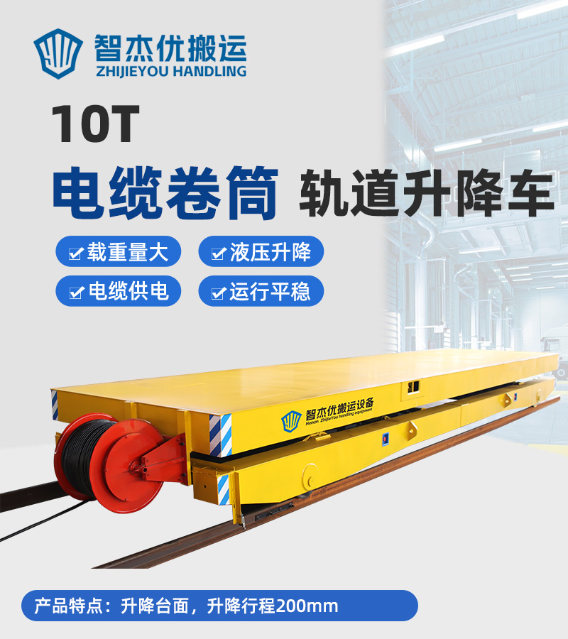 维修简单智杰优搬运为钢结构加工企业定制的电缆卷筒轨道升降车,整车长8米宽2.1米高0.7米载重10吨,主要用于车间生产线之间钢材原料的运输作业,平车设有升降装置可根据需求调整载货平台高度,升降行程200mm,适应不同高度的装卸作业,增加了设备的灵活性,电缆卷筒供电,卷筒自动收放电缆线避免缠绕和损坏延长了电缆的使用寿命,同时也保证了供电的稳定性,线控手柄操作平车前进后退简单方便,双组行程开关可实现起始终点定点停靠。