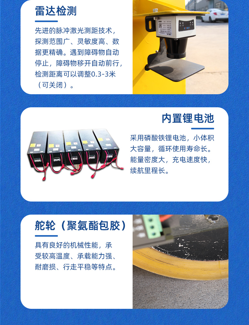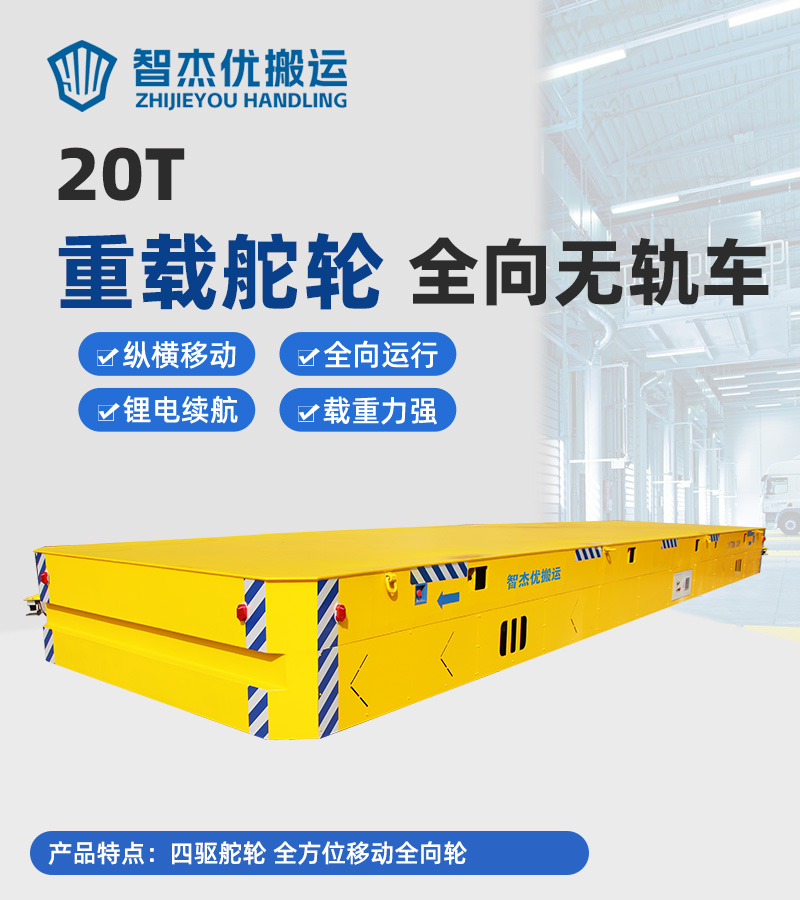 智杰优搬运为航运装备制造企业研发制造的2台重载舵轮全向车,长12米宽2.8米高1米额定载重20吨,定制超长车身主要用于大型海洋工程装备的转运过跨,选用锂电池供电满载运行不低于2小时,轮系配备4组舵轮,可全向运行实现前行、后退、左右横移、斜行、原地旋转等行走方式,适应室内室外及狭小空间作业环境,聚氨酯包胶材质适应多种路面运行,无线遥杆操控可远距离行驶,舵轮全向车具有避障雷达、声光报警、急停开关等保护功能,**性高,PLC人机交互触摸屏实时显示全向车运行状态,可手动设置调整平车参数,除遥控模式外 还可按企业需求定制为AGV自动化搬运车,提高重型设备转运效率 加快海洋工程装备建造进度 !
