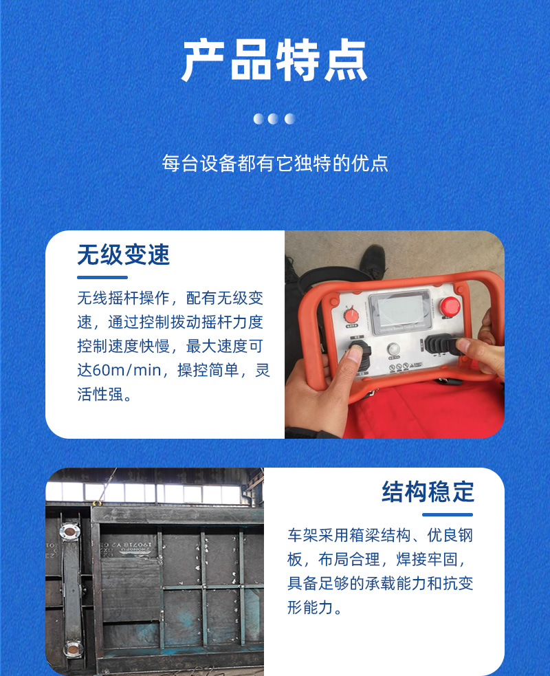 河南智杰优搬运设备有限公司是一家集开发、设计、生产、销售及售后服务为一体的化电动平车生产公司。公司拥有一支现代化的管理团队,凭借科学的管理方法和服务理念,依靠人才、环境支持优势,已成为电动平车行业的企业。致力于工厂、车间、仓储、码头、铁路等领域物料搬 运系统的研发、设计、生产、销售和服务。公司拥有现代化的管理团队、实力雄厚的研发、设计产品技术开发团队与实际工作经验极其 丰富的生产技师队伍。凭借科学的管理方法、雄厚的技术实力,全体员工精诚合作,公司已成为电动平车行业的中坚力量。