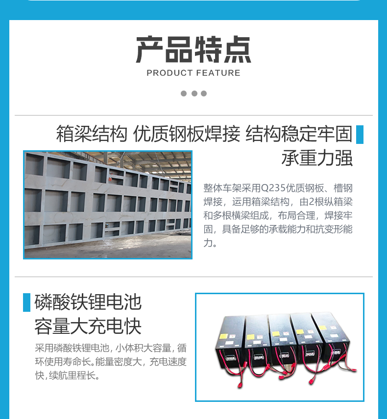 重型设备转运狭窄空间难以周转?精密定位耗时费力,重型载具行动笨拙?那一定不能错过这款50吨重载纵横移动升降车。整车长12米宽2.8米高1.1米用于大型设备的跨车间转运。台面定制四缸同步液压升降模块,可实现平稳顶升托架,配合全向移动底盘,让超长设备在复杂工况中轻松转运灵活穿行。轮系配备四组差速舵轮,独立转向系统赋予无轨车360°全向移动能力,伺服行星减速机与定制化伺服电机组成黄金动力链,可达毫米级位移精度控制,支持横移、斜行、原地旋转等8种行进模式。台面定制称重模块实时显示货物重量信息,超载报警提示。大容量锂电池供电无需频繁充电满负荷工况下仍能实现长距离续航。**装置配备雷达检测遇障即停!