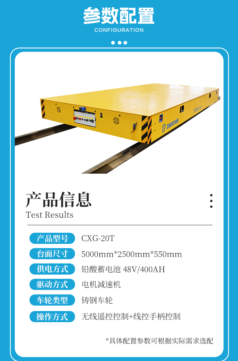 长5米宽2.5米高0.55米箱梁结构优质钢板焊接承重力强,轻松应对重型钢材、机械设备等大件物料转运,电机减速机动力输出平顺强劲,侧面预留接口可进行双车联动,一个遥控器控制两台车同时运行,适合超长工件的跨车间搬运。大容量蓄电池供电续航时间长无需频繁充电,该车设有隐藏式拖车钩,通过释放刹车可当做平板拖车进行使用,大大提高了轨道车的使用灵活性,电机、电池等核心部件均采用密封防护工艺,从容应对户外雨雪、粉尘等恶劣环境,搭载红外传感器超声波测距避障系统,实时探测轨道前方障碍物,遇到障碍自动停车,模块化设计,电池部件支持快速拆换,**大限度减少停机损失!