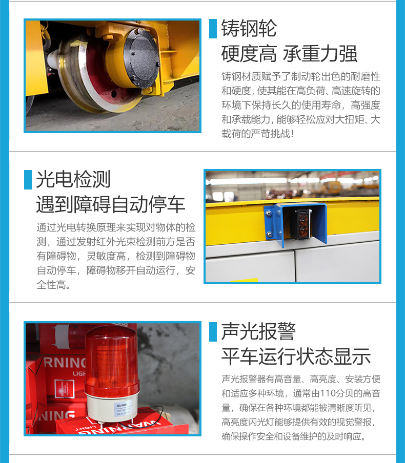 蓄电池轨道搬运车,箱梁结构设计,槽钢钢板焊接,承重能力达10吨,轻松应对重型物料运输需求。精密减速机电机驱动系统,铸钢车轮运行平稳噪音小,适应复杂工况,确保运输过程**可靠。免维护蓄电池供电,减少人工干预成本,低底盘结构高强度钢板台面,兼容托盘、货架、大型设备等多种载具,装卸便捷高效,可用于转运大型机械部件、模具钢材、替代传统吊装降低磕碰风险。支持轨道间距、车身尺寸、供电方式灵活定制。