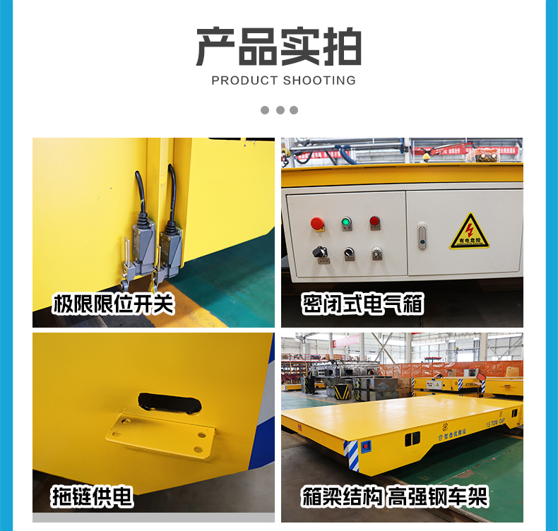 短距离重物过跨转运车拖链供电轨道平车,长2.5米宽4.5米平台设计,0.5米低**设计,车架高强钢焊接箱梁结构稳定牢固,可承载15吨的货物,电机减速机驱动系统,动力输出稳定强劲,启停平稳无冲击,采用拖链供电系统支持来回往复运行,告别传统电缆磨损难题,可满足全天候搬运作业需求,无续航焦虑,轻松应对设备零部件、钢材、设备半成品等重型物料,光电避障、极限限位、过载保护多重**防护,打造全天候**作业环境,轻松应对高频次、长周期作业场景!