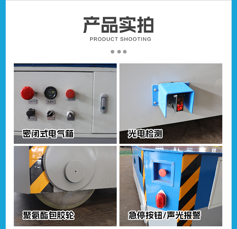 专为汽车零部件生产车间模具转运定制的差速转向无轨车,长1.8米宽1.5米整车高度0.7米额定载荷10吨,娇小车身轻松融入车间布局超强载荷轻松应对大型模具,冲击载荷12吨无惧重载挑战。车架钢板焊接箱梁结构结实耐用,运行速度5-20m/min速速可调节,轮系配备聚氨酯包胶轮万向轮组合,静音运行不伤地坪,采用差速转向可实现360°原地旋转,**小转弯半径1.5米运行灵活自由,台面可加铺防滑橡胶垫,有效防止模具滑动保障运输**,采用优质铅酸电池组供电,单次充电续航大于4小时,满足长时间使用需求,前后红外激光避障系统实时探测前方障碍物遇障即停,大幅提升运行**性!