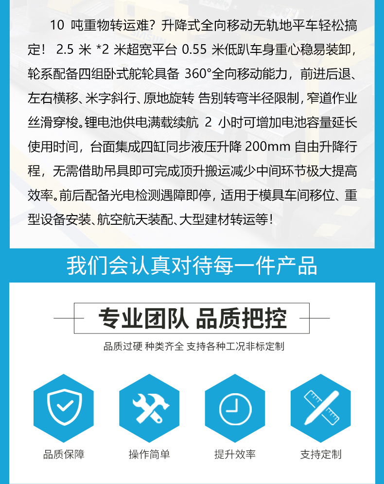 爆款工业搬运神器来袭!这辆电动地平车彻底颠覆传统搬运!2.5米*2米超大平台10吨载荷说走就走,液压升降同步顶升200mm生产线无缝对接,舵轮驱动360°无死角全向移动,适应多种工况!