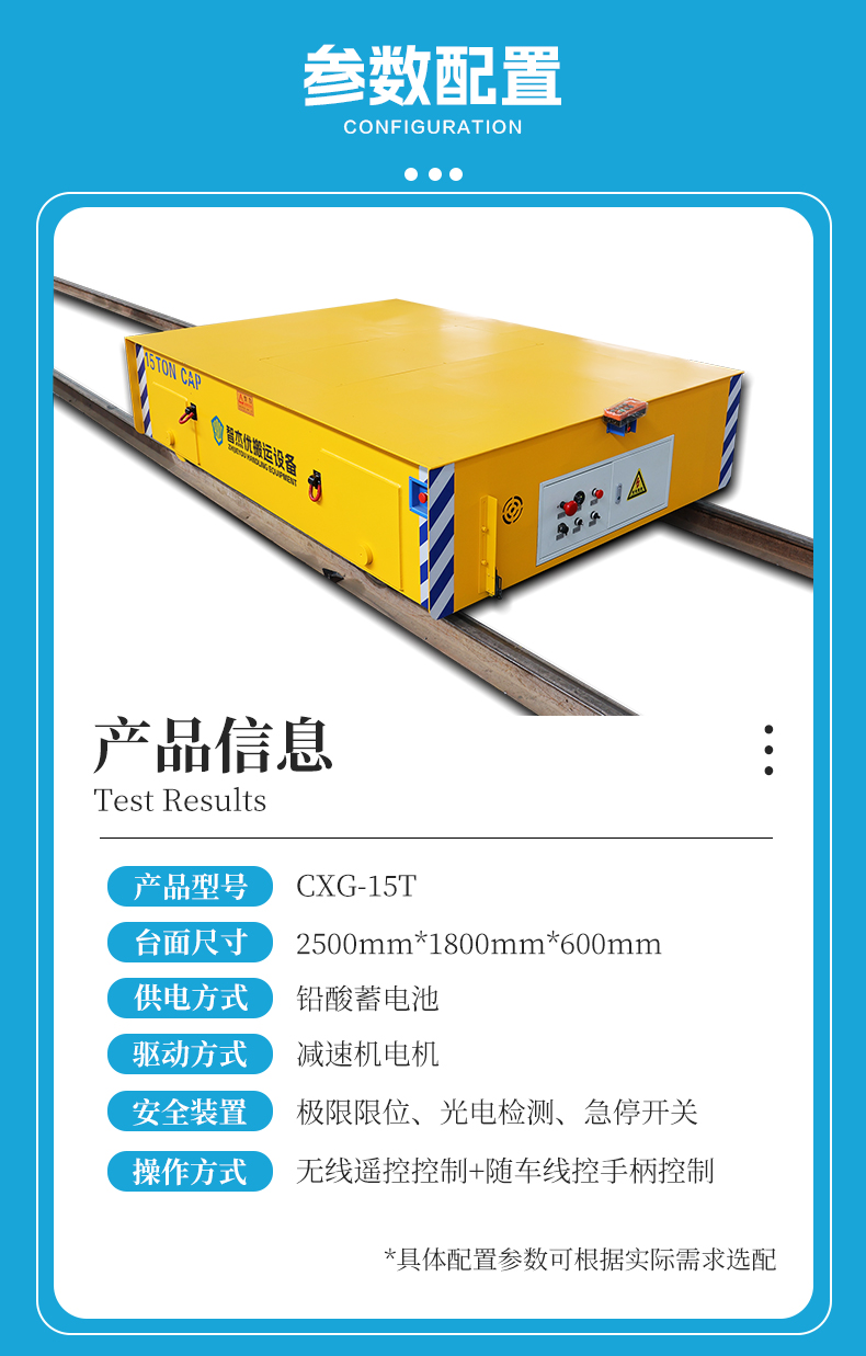小空间,大承载,专为高效车间打造的电动轨道运输车,2.5米*1.8米紧凑车身15吨额定载荷,轻松穿梭在狭窄通道与生产线间,固定轨道运行平稳**,适用于重型工件、大型模具、原材料、零部件等物料转运,经济高效的解决大重量搬运难题!